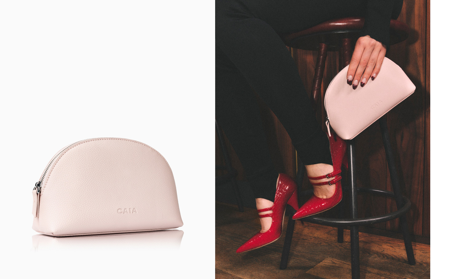 A compact case made for refined moments, featuring a curved silhouette.