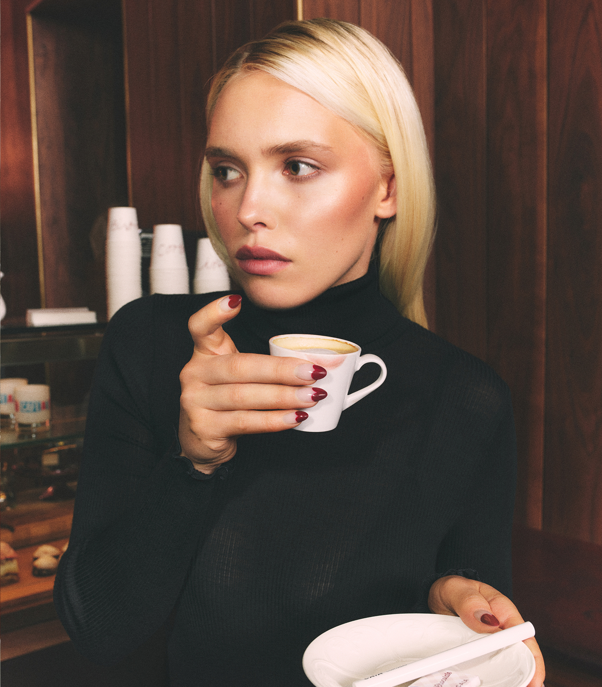 With Bistro. Lips. Cortado.